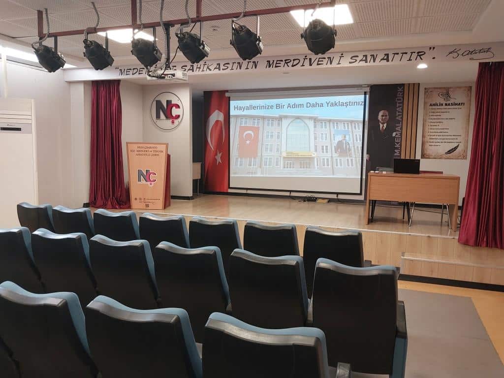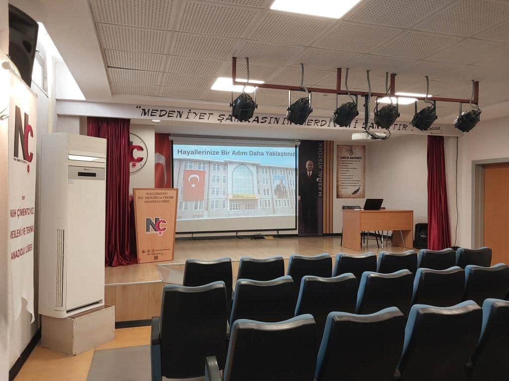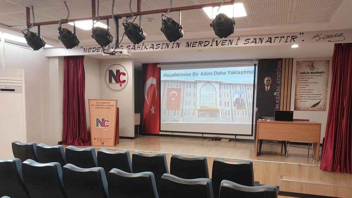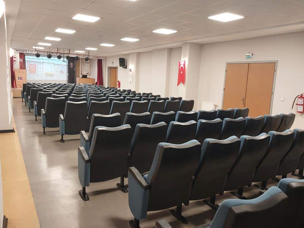 Konferans salonumuz, yalnızca bir fiziksel alan değil; aynı zamanda fikirlerin paylaşıldığı, öğrencilerin kendini ifade ettiği ve topluluk bilincinin güçlendiği bir platformdur. Okulumuzun vizyonunu yansıtan bu alan hem öğrencilerimizin hem de misafirlerimizin kendilerini değerli hissettiği bir deneyim sunar.