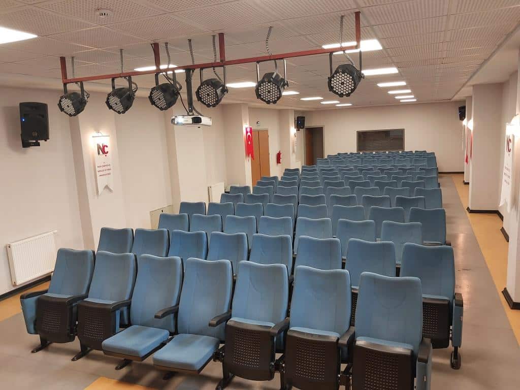 Konferans salonumuz, öğrencilerimizin akademik, kültürel ve sosyal gelişimlerine katkı sağlayan etkinliklerin merkezi konumundadır. Modern mimarisi, teknik donanımı ve konforlu yapısıyla salonumuz; seminerlerden panel oturumlarına, kariyer günlerinden sektör iş birliklerine kadar birçok etkinliğe ev sahipliği yapmaktadır.
