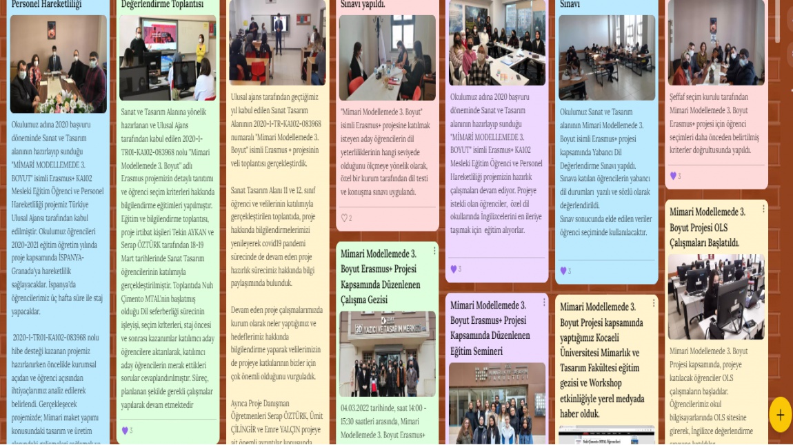2020-1-TR01-KA102-083968 Mimari Modellemede 3. Boyut Erasmus+ Projesi Dijital Panosu