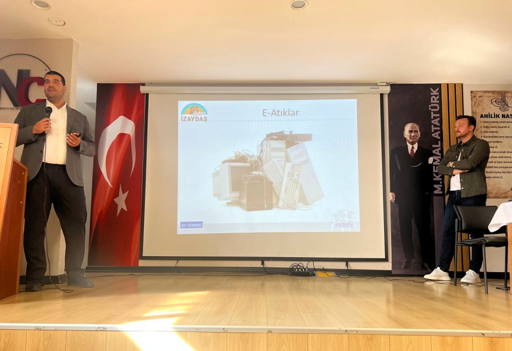 İZAYDAŞ çalışanları Mehmet Melih Saraç ve Umur Gürdal’ın katkılarıyla gerçekleşen seminerde; israfın önlenmesi, kaynakların daha verimli kullanılması, atık miktarının azaltılması, etkin toplama sistemlerinin kurulması ve geri dönüşümün yaygınlaştırılması gibi temel konular ele alındı. Etkinlik, okulumuz sıfır atık çalışmalarını yürüten Müdür Yardımcısı Begüm Yarlıgan’ın girişimiyle hayata geçirildi.